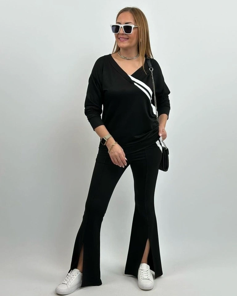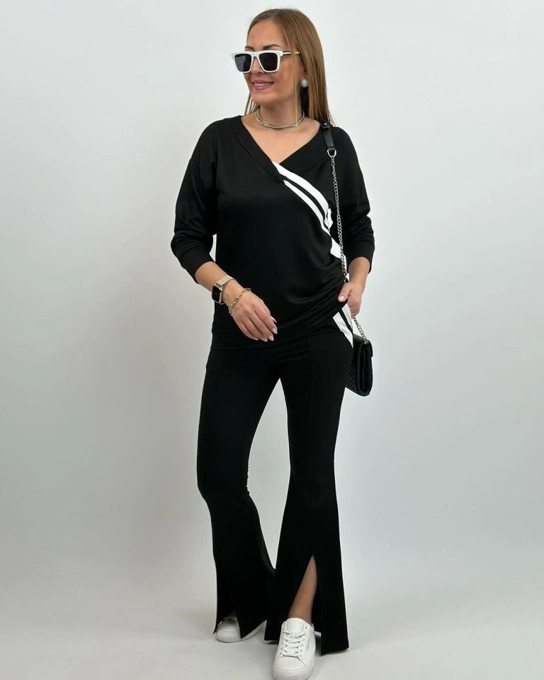 Kadın Uzun Kollu V Yakalı şerit Detaylı Viskon Iki Iplik Bluz Ve Pantolon Ikili Takım