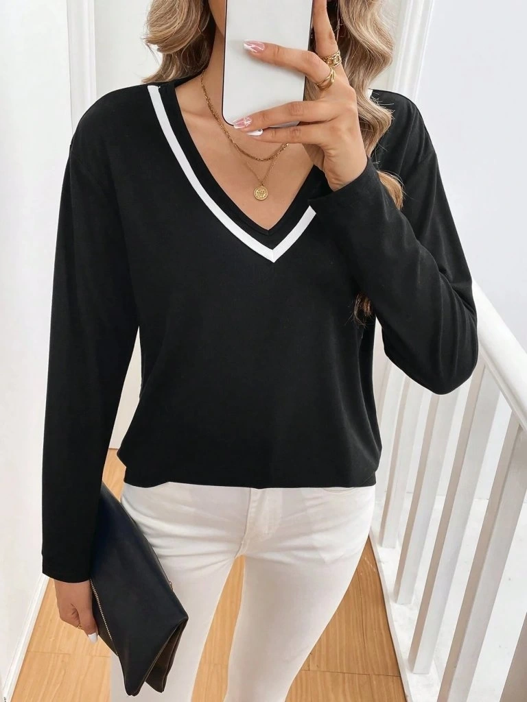 Kadın Uzun Kollu V Yakalı Viskon Iki Iplik Bluz