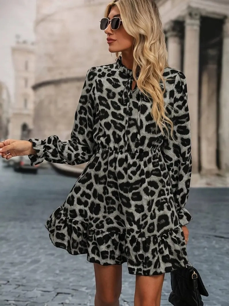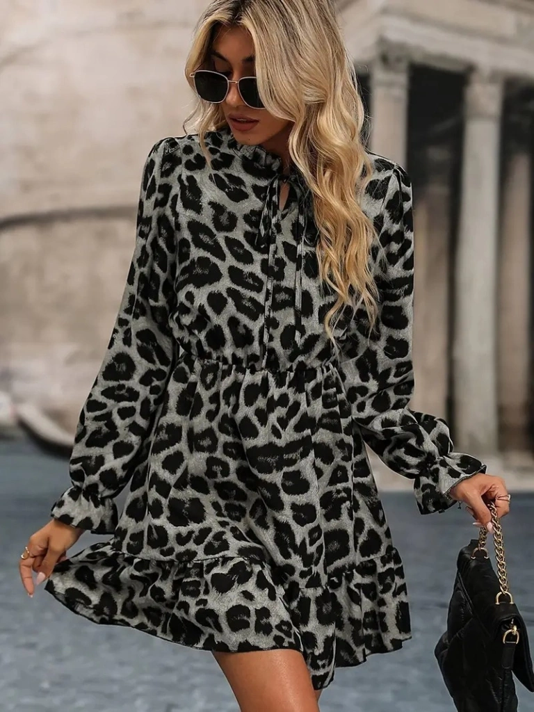Kadın Uzun Kollu Yakadan Bağlamalı Beli Lastikli şardonlu Dalgıç Elbise