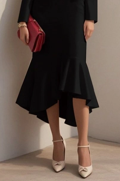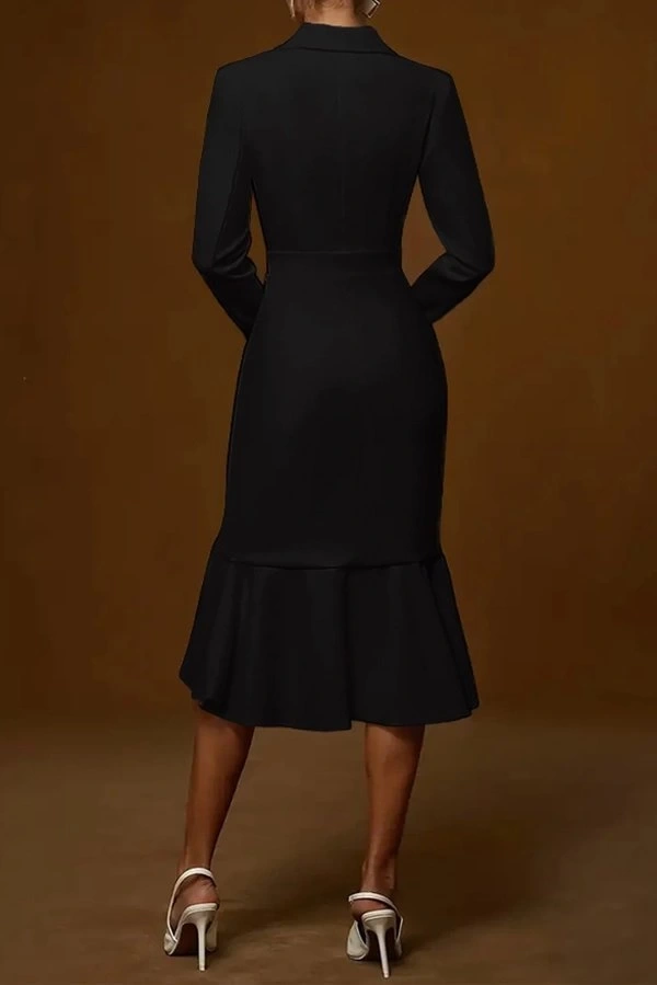 Kadın Uzun Kollu Yakalı Belden Oturtmalı Midi Ithal Krep Elbise