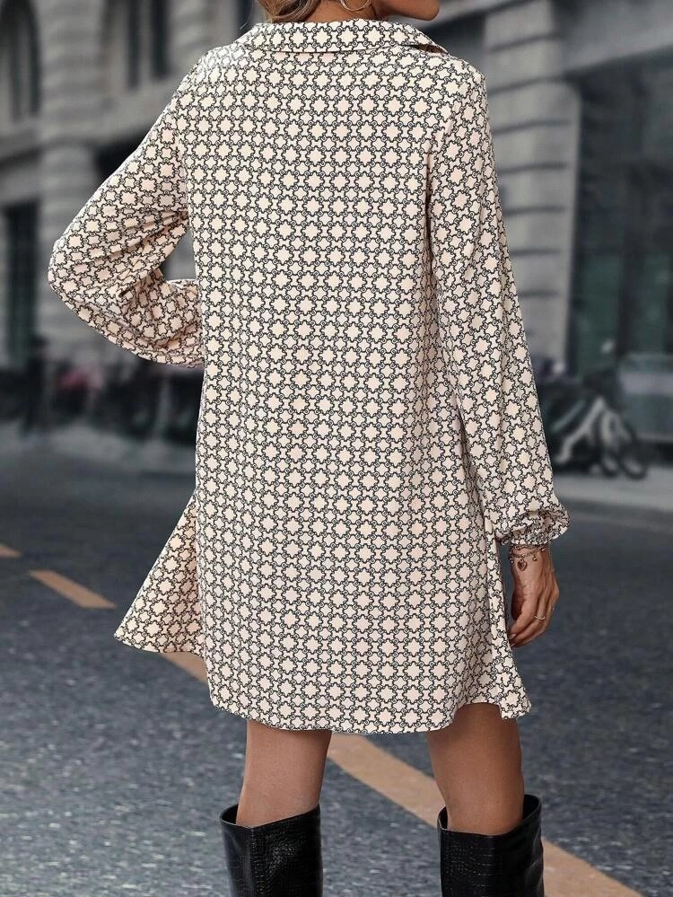 Kadın Uzun Kollu Yakalı Desenli Mini Modal Elbise