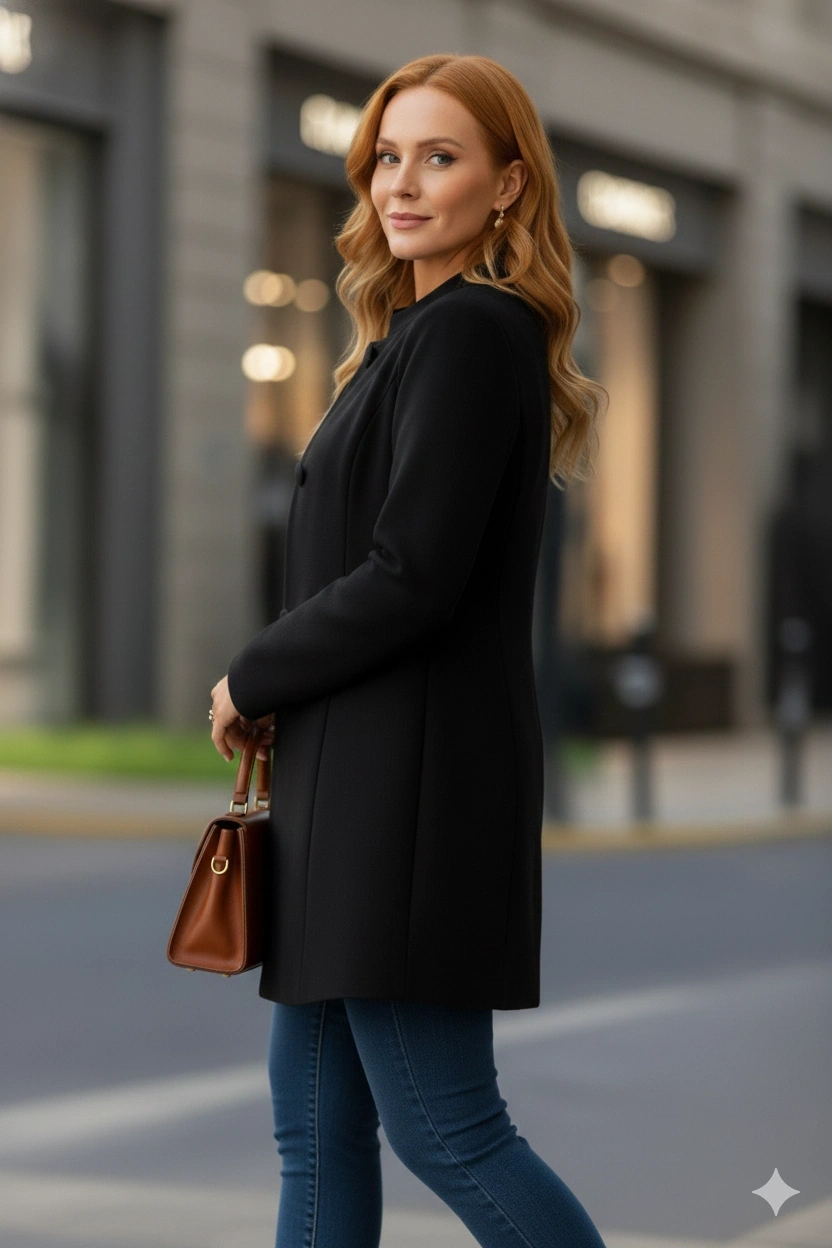 Kadın Uzun Kollu Yakalı önü Düğmeli Ithal Kaşe Astarlı Kaban