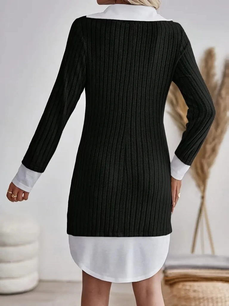 Kadın Uzun Kollu Yakalı şardonlu Kaşkorse Dokuma Detaylı Elbise