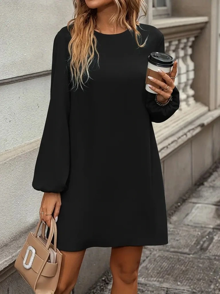 Kadın Uzun Kollu Yuvarlak Yaka Mini Ithal Krep Elbise