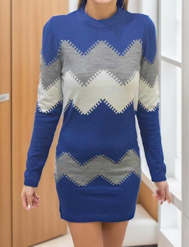 Kadın Uzun Kollu Zigzag Desen Triko Elbise