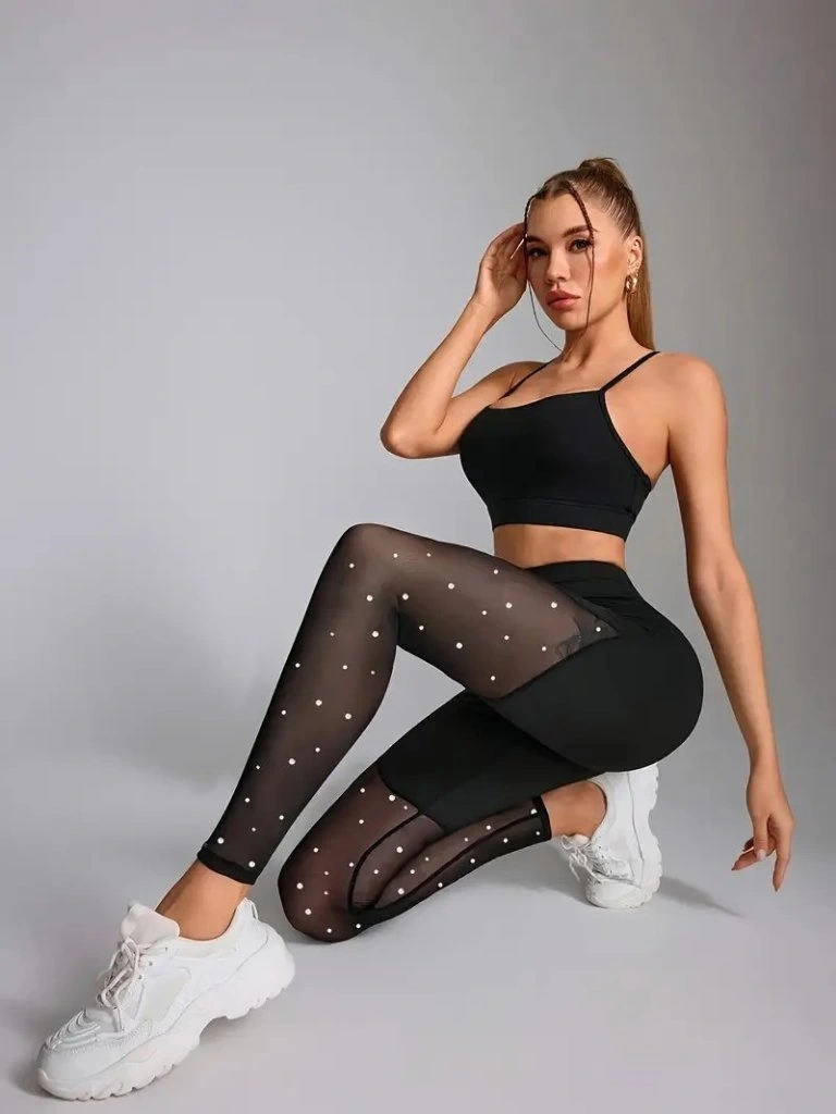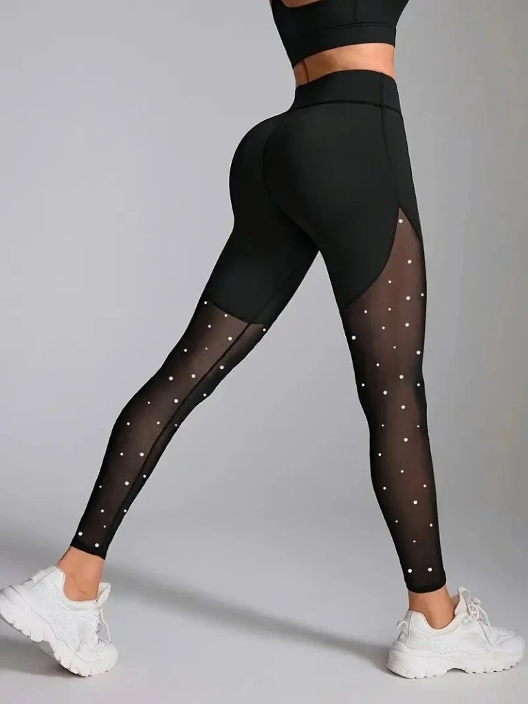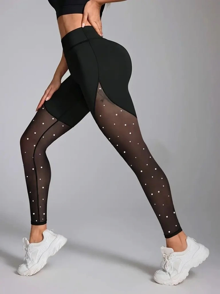 Kadın Yüksek Bel Asimetrik Kesim Detaylı Taşlı Tüllü Spor Dalgıç Tayt