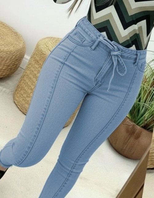 Kadın Yüksek Bel Belden Kuşaklı Yırtık Detaylı Kot Pantolon
