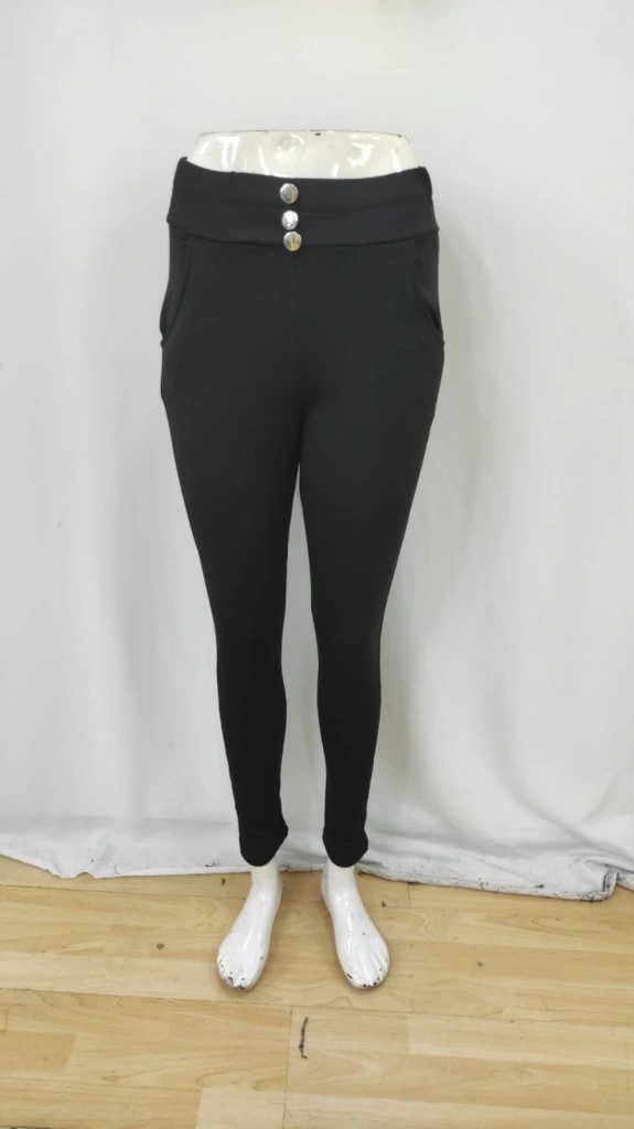 Kadın Yüksek Bel Cepli Düğmeli şardonlu Dalgıç Tayt Pantolon
