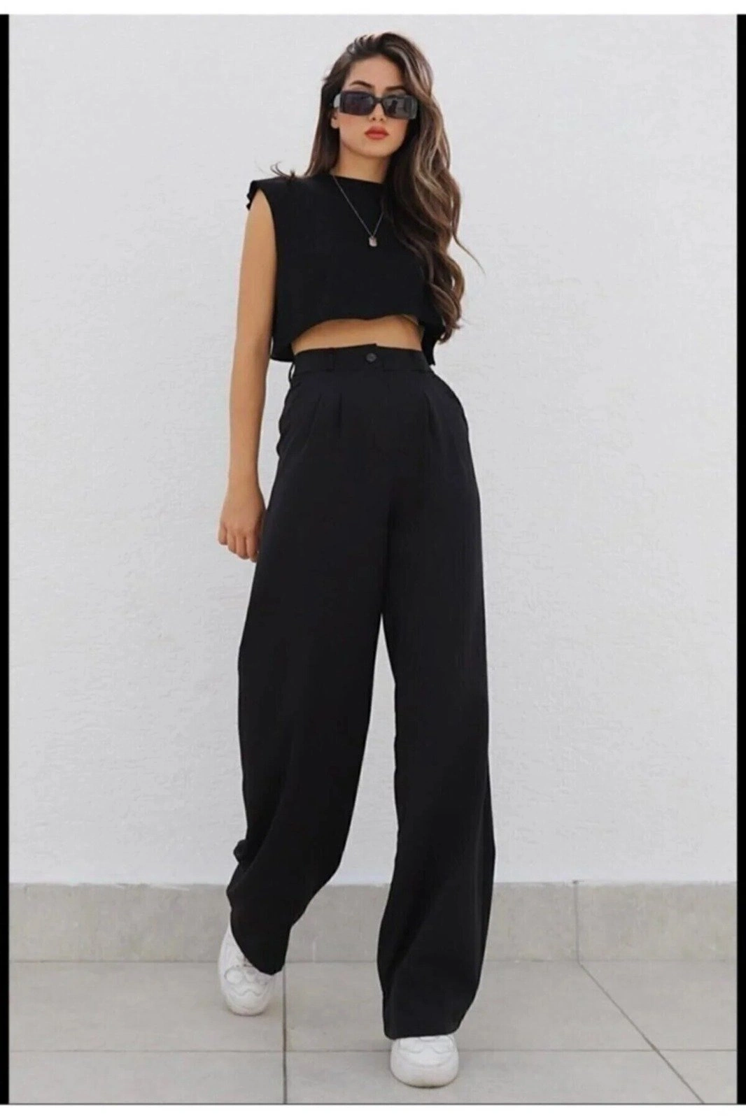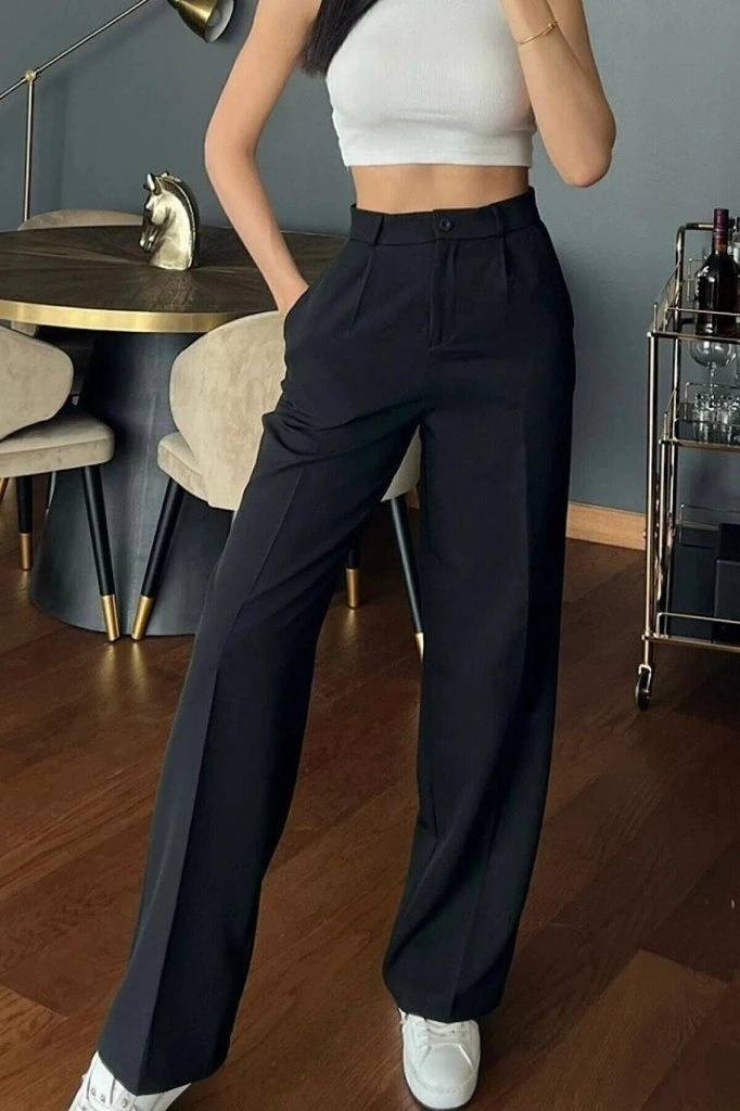 Kadın Yüksek Bel Cepli Ithal Krep Pantolon