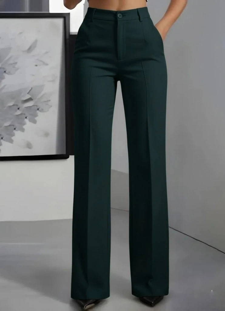Kadın Yüksek Bel Cepli Ithal Krep Pantolon