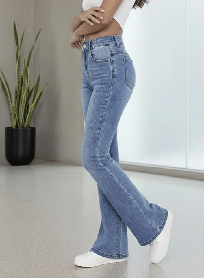 Kadın Yüksek Bel İspanyol Paça Kot Pantolon