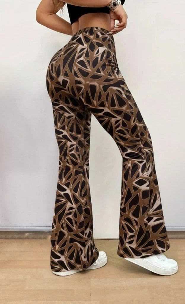 Kadın Yüksek Bel Kamuflaj Desenli Dalgıç Tayt