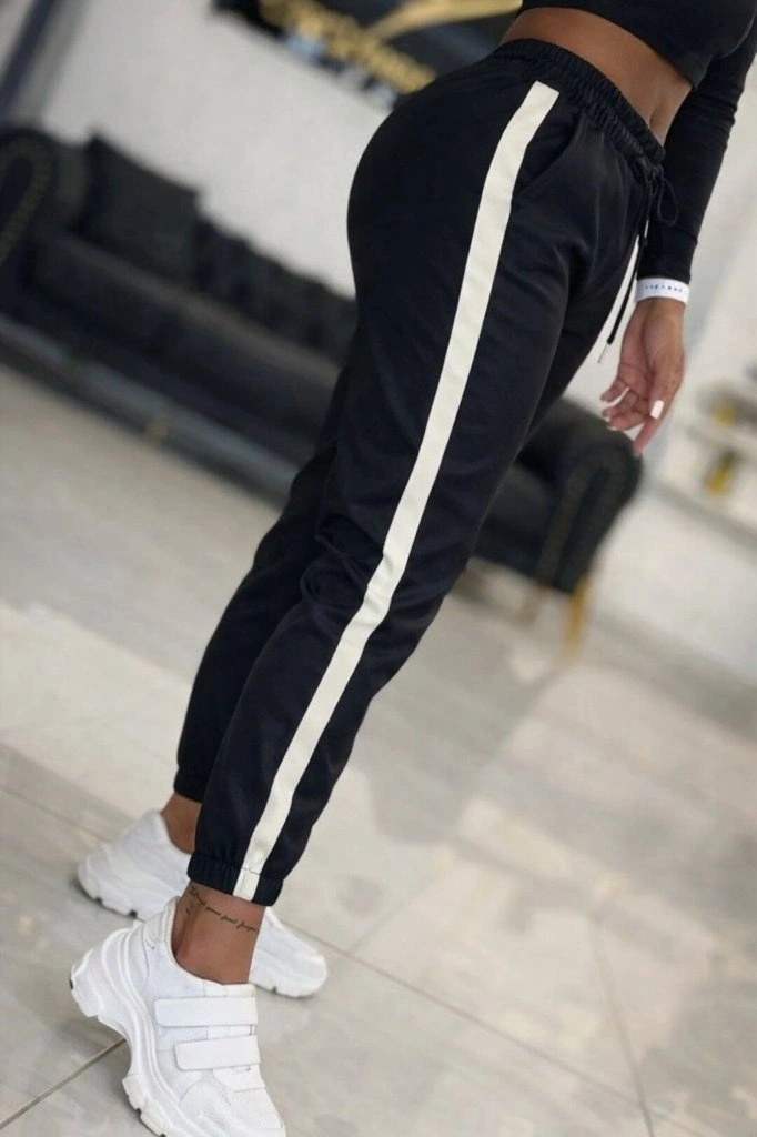 Kadın Yüksek Bel Lastikli Yan şerit Detaylı Deri Pantolon