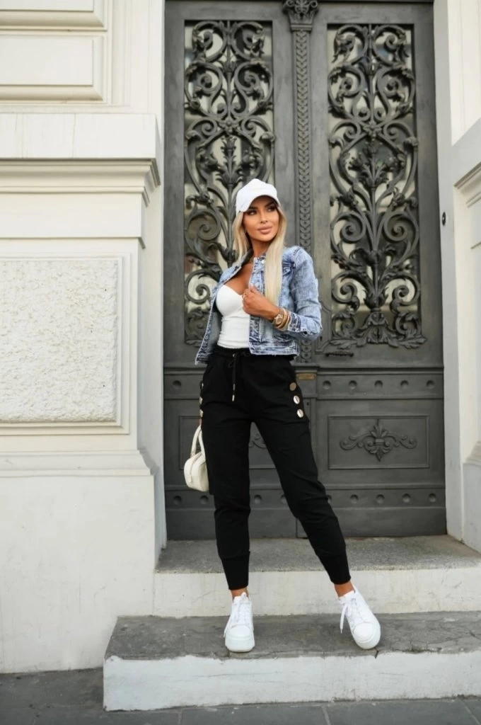 Kadın Yüksek Bel Lastikli Yanlardan Düğmeli Viskon Iki Iplik Pantolon