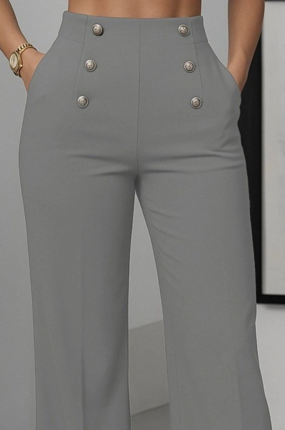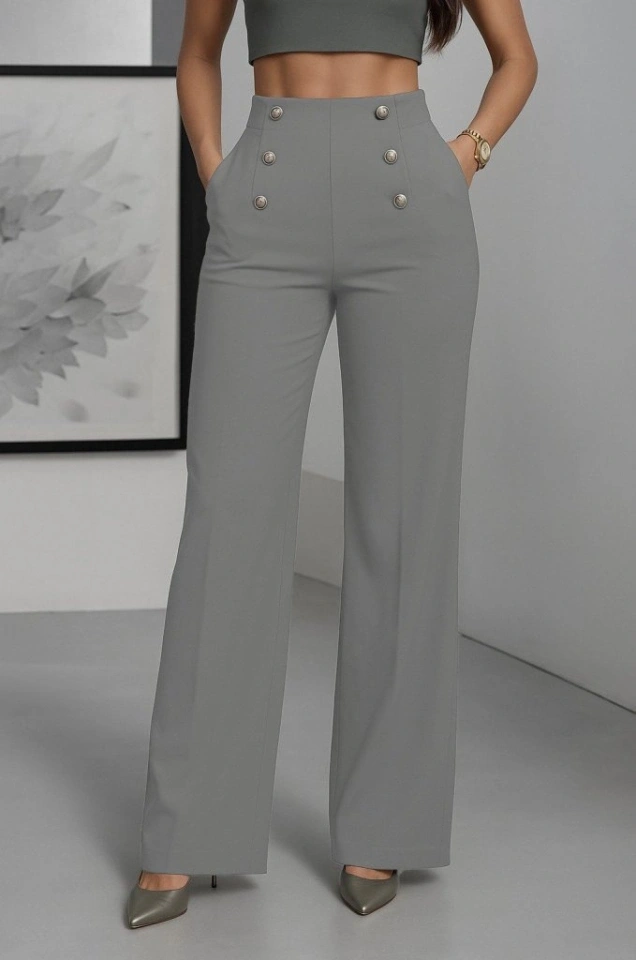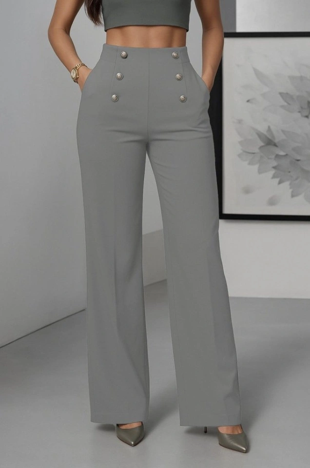 Kadın Yüksek Bel önden Düğmeli Uzun Paçaya Doğru Geniş Ithal Krep Pantolon
