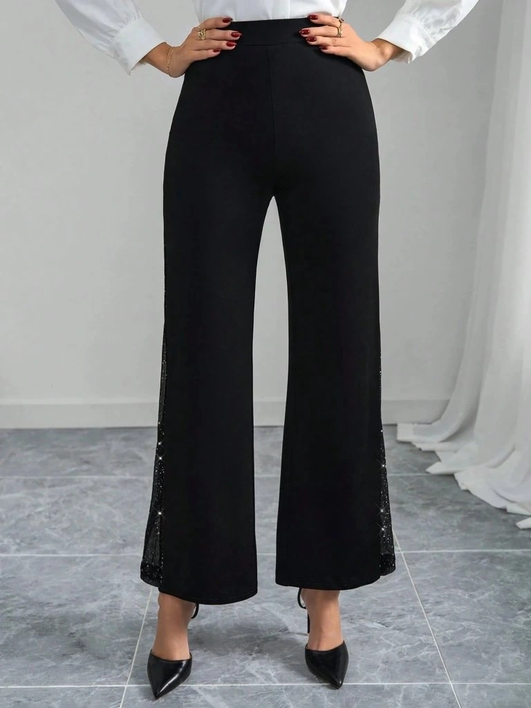 Kadın Yüksek Bel Yanlardan Tül Detaylı Ithal Krep Pantolon