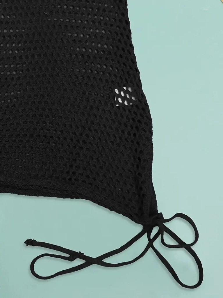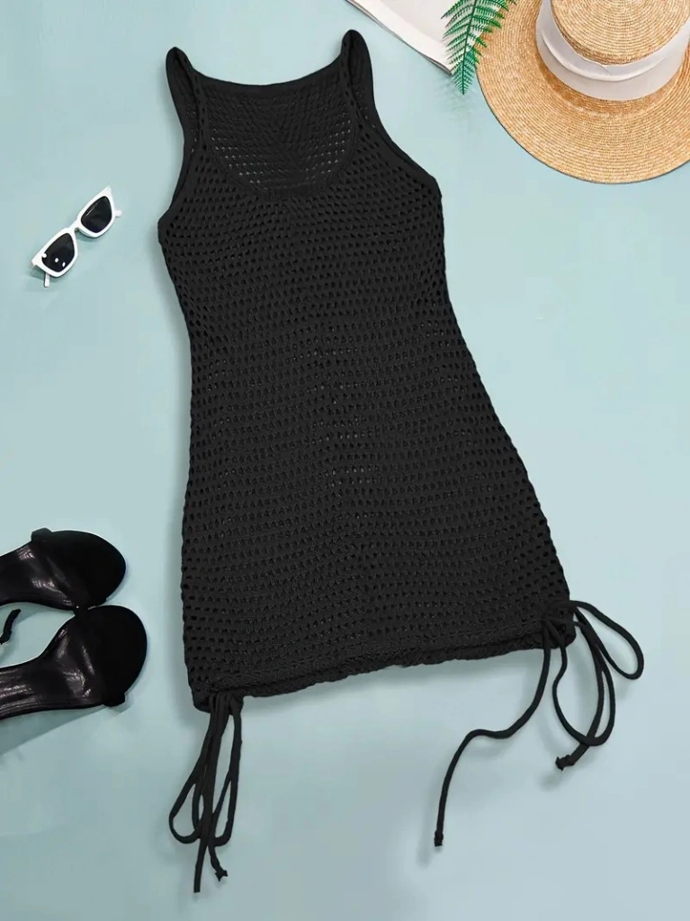 Kadınaskılı Eteği Büzgü Bağlama Detay Delikli örme Triko Pareo Elbise