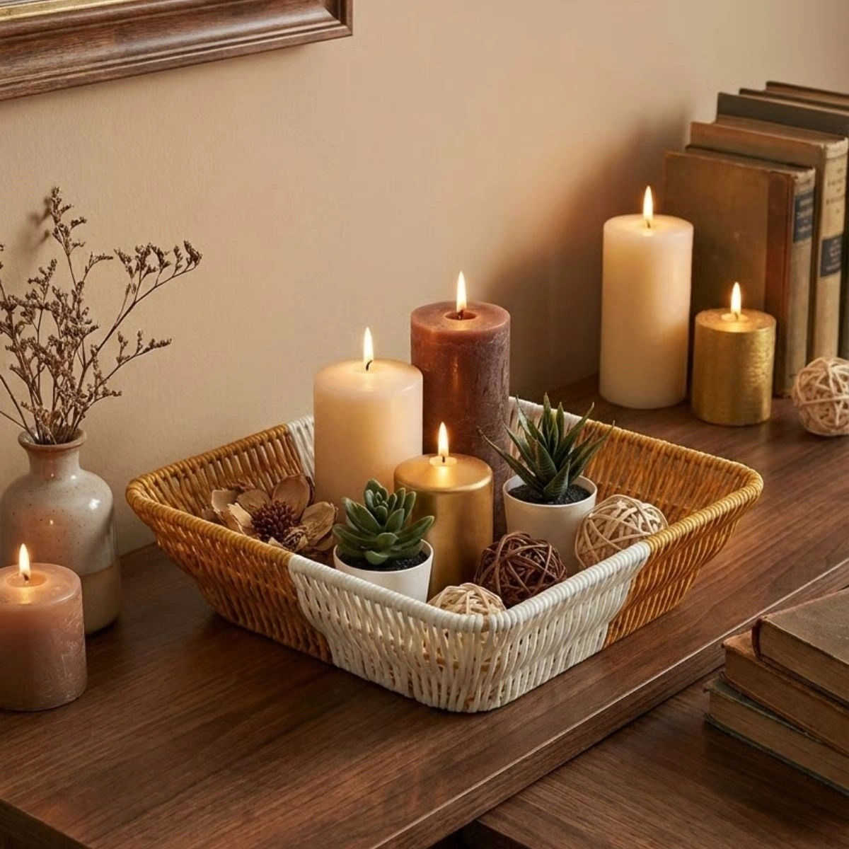 Kare Çift Renkli Plastik Rattan Ekmek ve Meyve Sepeti, modern kare formu ve doğal hasır görünümlü dokusuyla mutfak ve banyo alanlarında hem şıklık hem de düzen sağlar. Çift renkli tasarımı sayesinde farklı dekorasyon stilleriyle kolayca uyum sağlar ve bulunduğu ortama dekoratif bir katkı sunar.