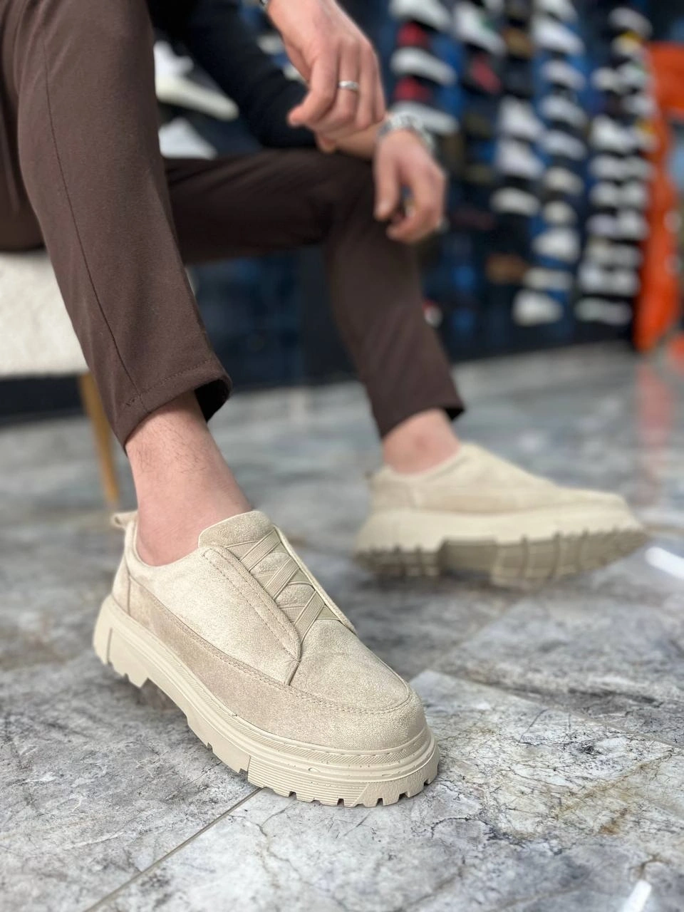 KB-703 Kuback Bej Süet Lastikli Günlük Erkek Ayakkabı
