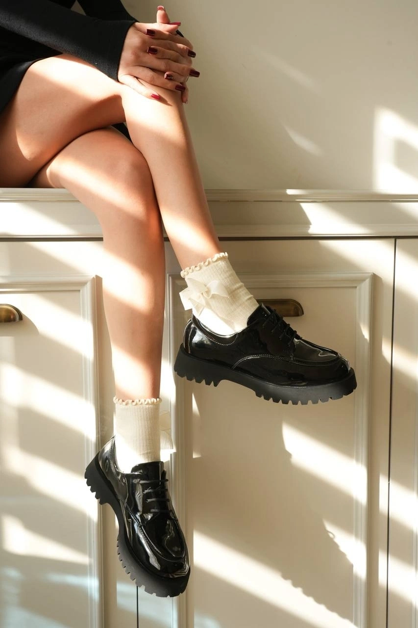 KB-KX6 Kuback Kömür Rugan Bağcıklı Günlük Unisex Ayakkabı