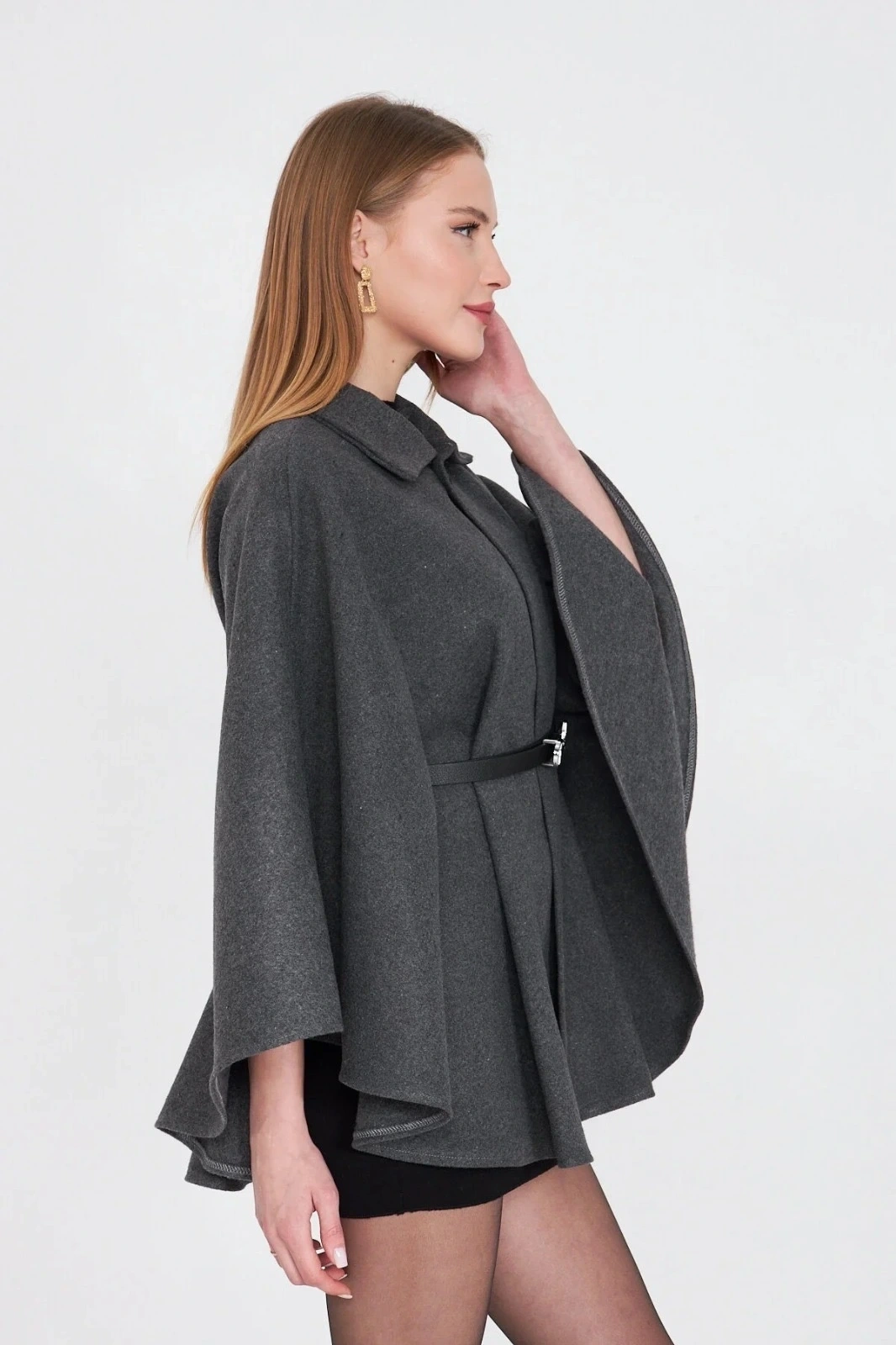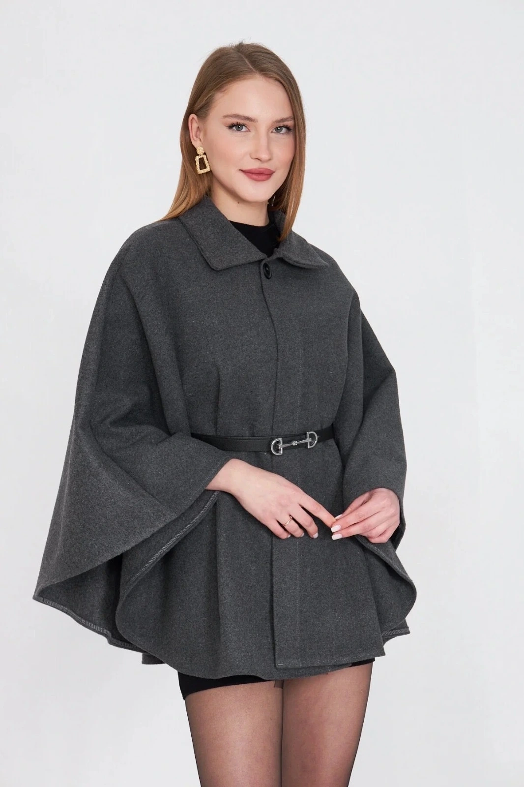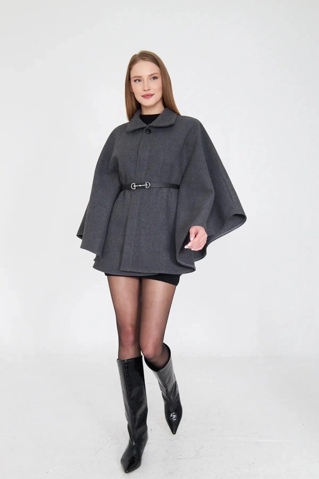 Şık ve modern bir görünüm elde etmek isteyen kadınlar için ideal bir seçenek olan Kemerli Kaşe Panço Antrasit PT, soğuk havalarda şıklığınızı korumanıza yardımcı olacak.