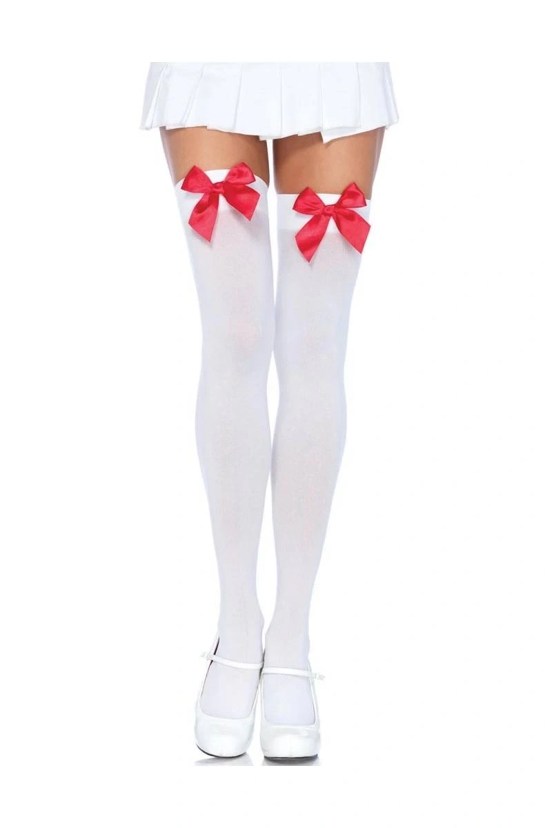 Kırmızı Fiyonklu Beyaz Jartiyer Çorabı TM1147