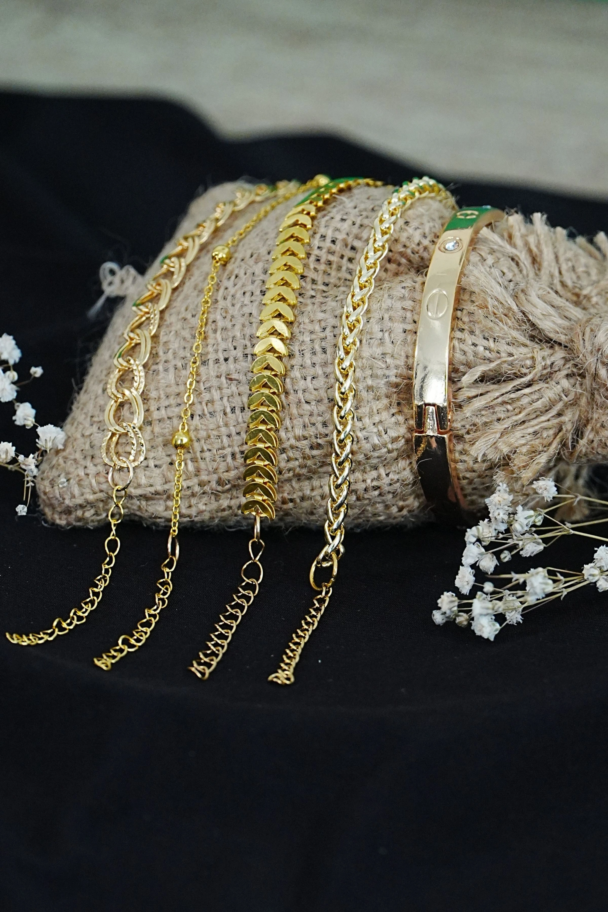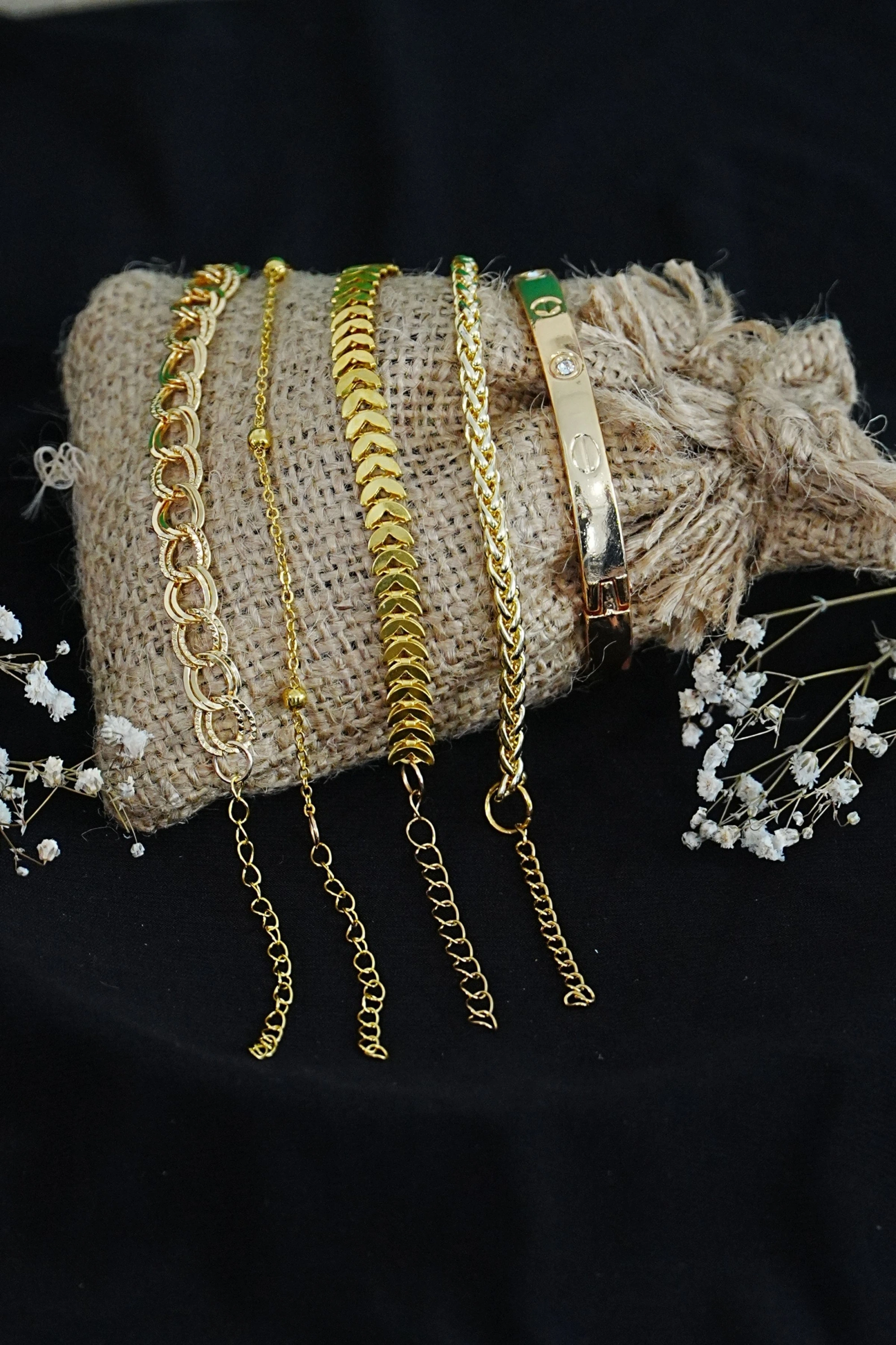 Göz alıcı tasarımı ve zarif detaylarıyla öne çıkan Kadın Altın Kaplama Kartier Stil Kombin Bileklik Seti, modern şıklığı ve günlük kullanımı bir araya getiriyor. Set içeriğindeki tüm parçalar birlikte gönderilirve stil sahibi kadınlara özel olarak hazırlanmıştır.
