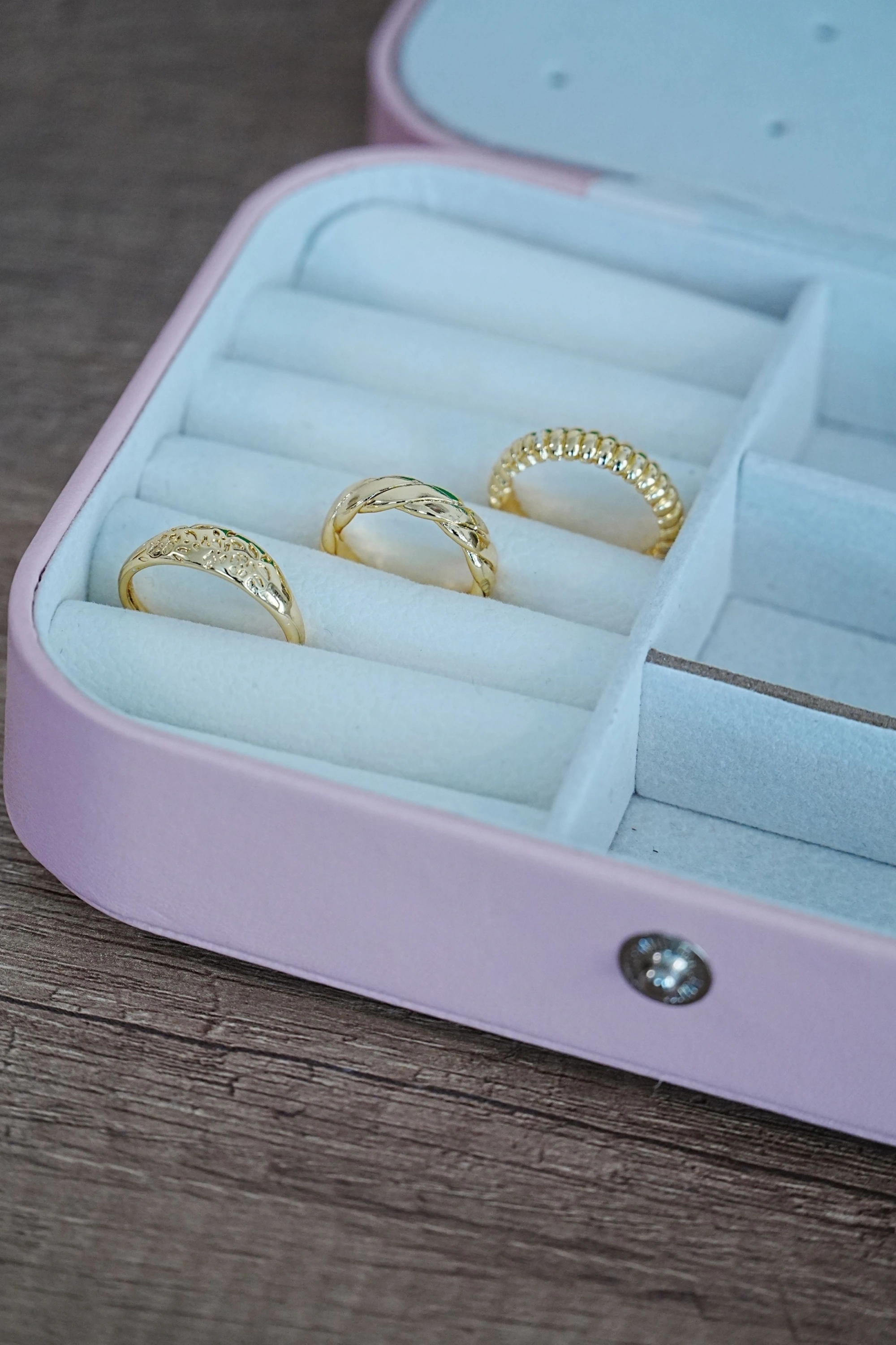 Farklı desen ve dokularda tasarlanmış 3 ayrı yüzükten oluşan bu set, her biri arkasından ayarlanabilir yapısıyla tüm parmak ölçülerine uyum sağlar. Böylece hem rahatlıkla takılır hem de şıklığınızdan ödün vermezsiniz.