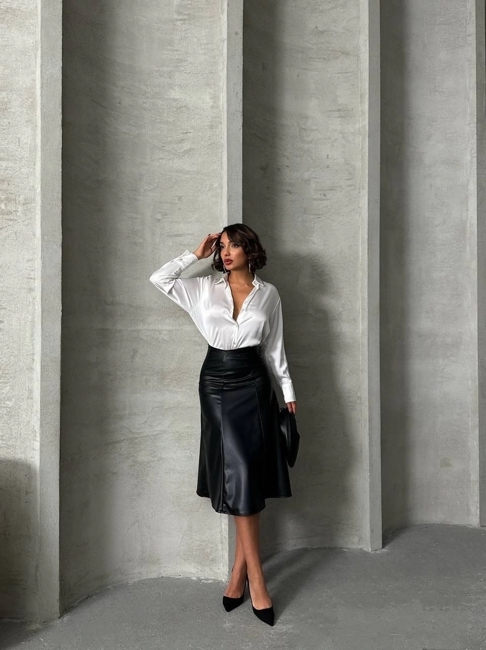 Şıklığı ön planda tutan Komple parçalı deri eteği, gece davetlerinden günlük şıklığa kadar birçok farklı kombinle kullanabilirsiniz.