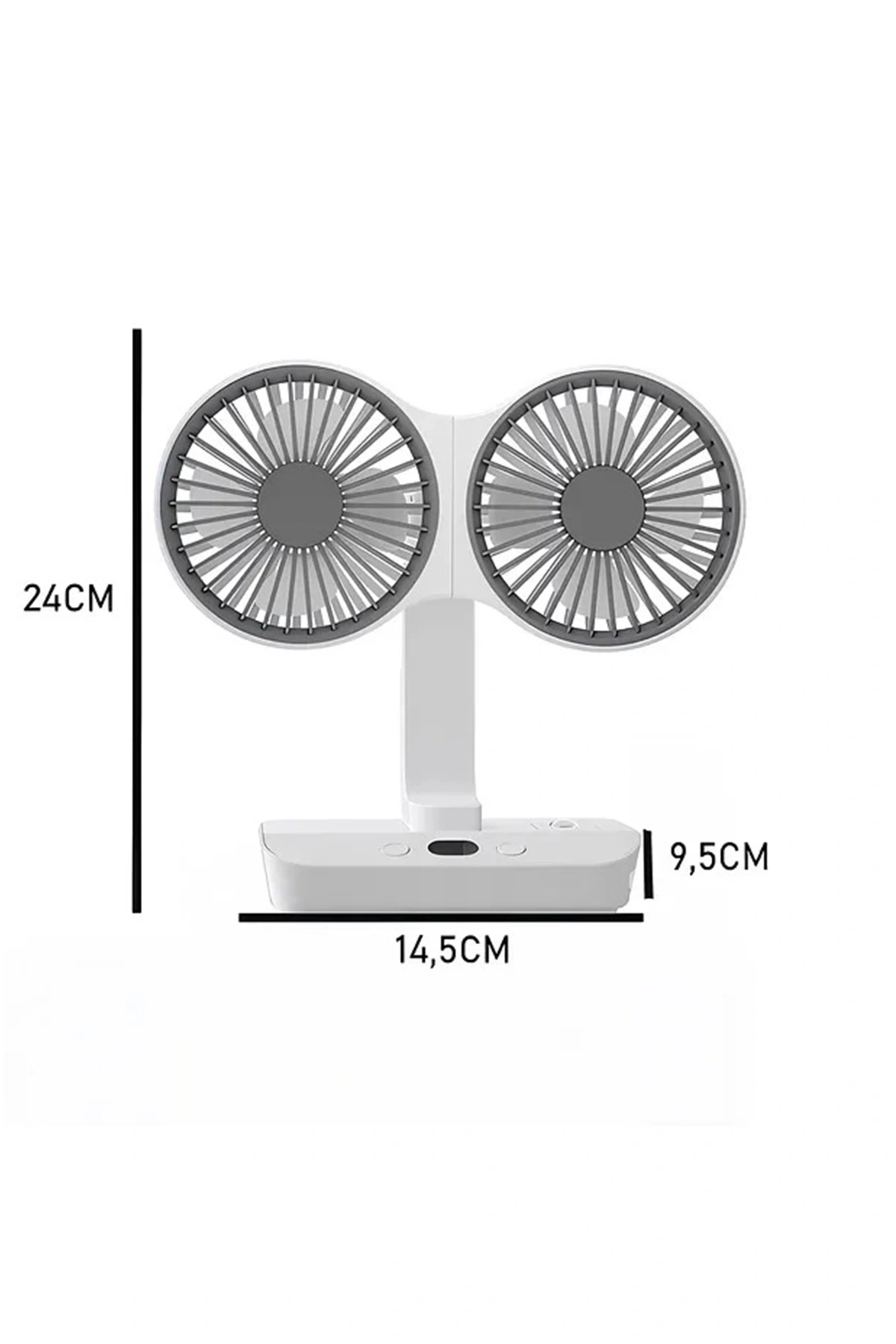 Masaüstü Dijital Ekranlı Çift Fanlı Led Işıklı Soğutucu Fan Ev Ofis Şarjlı Vantilatör