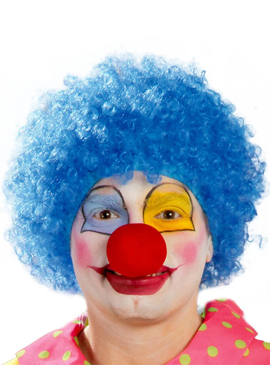 Mavi Renk Kıvırcık Afro Bonus Peruk Takma Saç ve Kırmızı Burun Seti (4940)