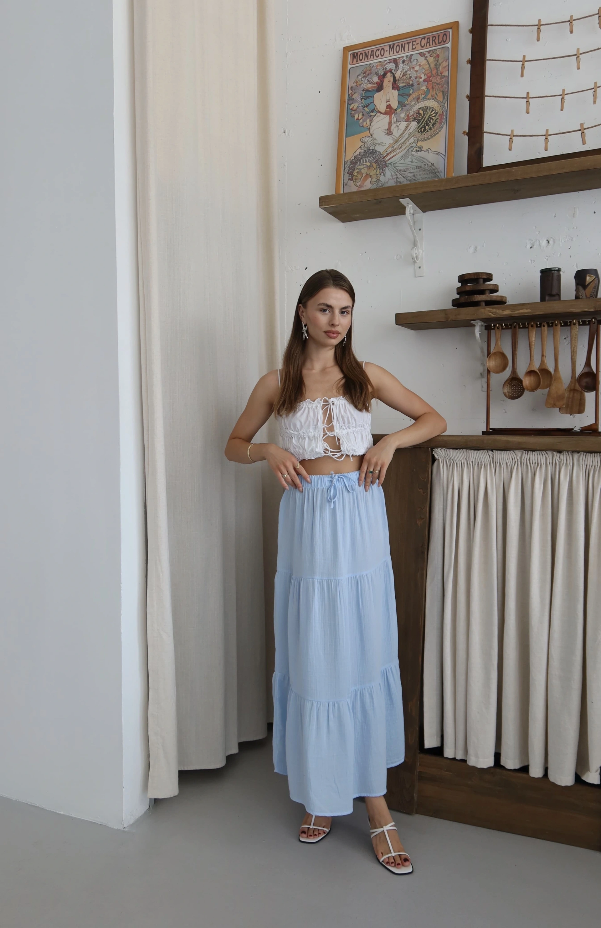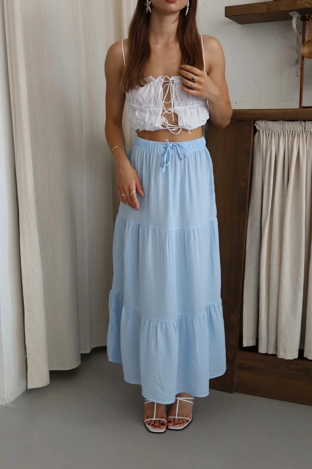Bu muhteşem Müslin Kumaş Keten Uzun Etek, gardırobunuzda şıklığı ve rahatlığı bir araya getiriyor.