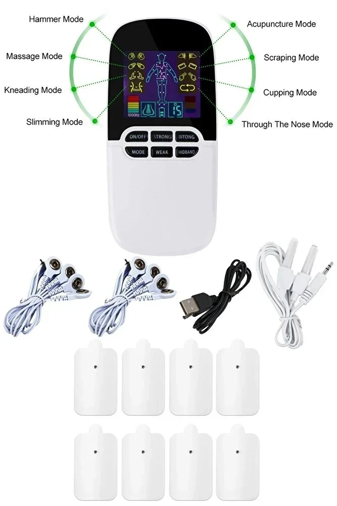 Çift kanallı masaj aleti, 4 elektrodu ve 4 pedi ile aynı anda 4 ped kullanımına olanak tanır. 8 farklı masaj seçeneği ve 15 kademe hız ayarı sayesinde geniş bir kullanım imkanı sunar. LED ekranı ile kullanımı kolaydır ve adaptör veya pil ile çalışabilir. (Kutu içinde adaptör mevcut değildir, yalnız usb bağlantı kablosu mevcuttur. Cihaz üzerindeki zaman ayarı ile sizin tercihinize göre 5, 10 veya 15 dakikalık seanslar ayarlayabilirsiniz.