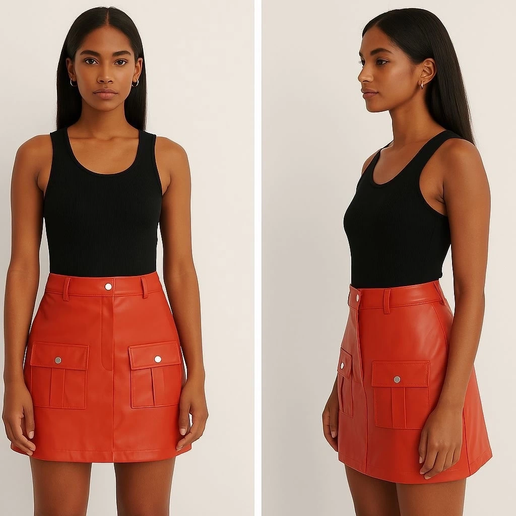 Önden iki cepli deri etek turuncu H240040, şıklığı ve konforu bir arada sunar.