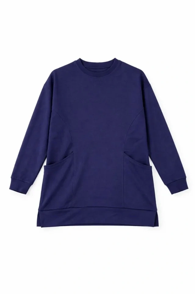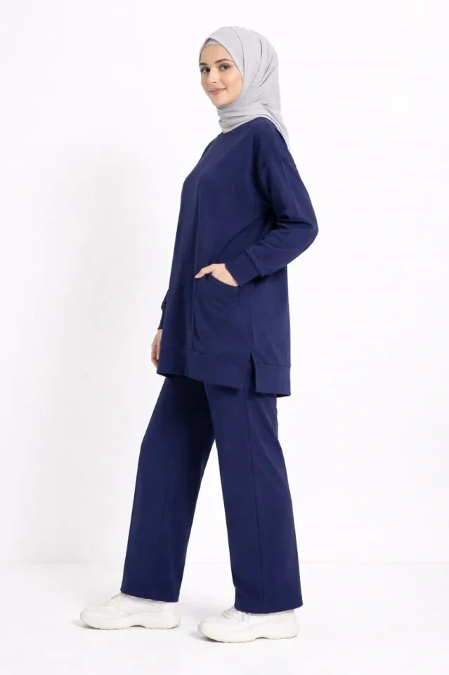 Osy Modal Yumuşak Dokulu Kumaş Tesettür Cepli Tunik Pantolon Takım - Lacivert