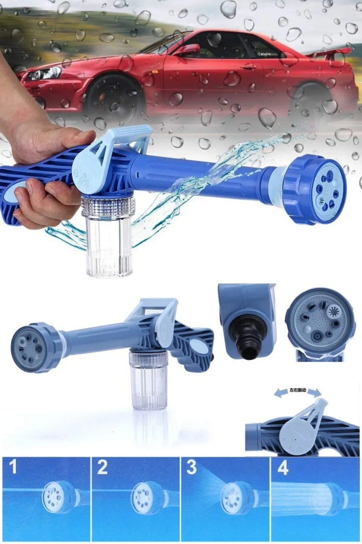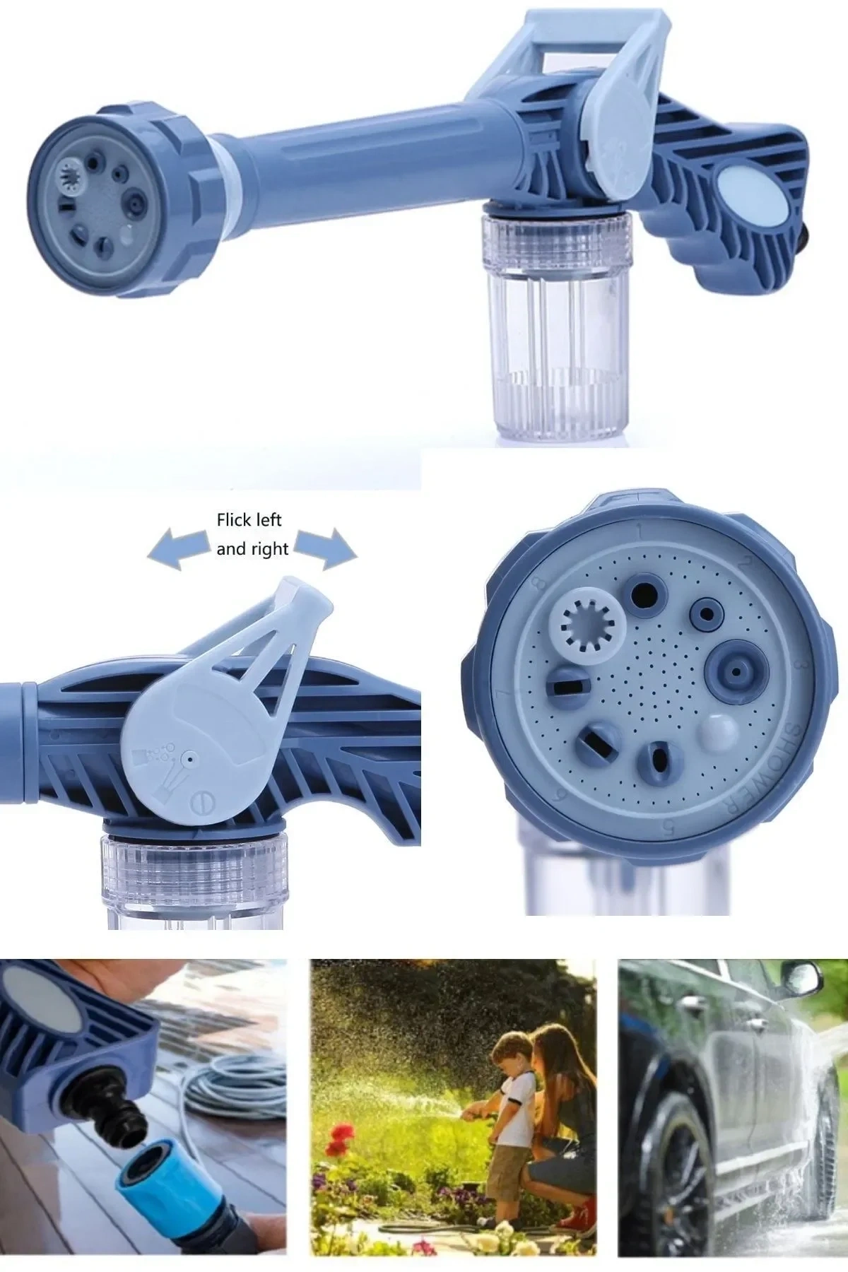 Otomobil Yıkama Sulama Fonksiyonlu Su Püskürtme Tabancası Deterjanlı Akıllı Tayzikli Basınçlı Bahçe 8 Uçlu Araba Yıkama Hortum Takılabilir Basınç Sağlayan Araba Bahçe Yıkama Çok Fonksiyonlu Tabanca Bahçe Sulama Araç Yıkama Köpürtme Tabancası 8 Fonksiyonlu Deterjan Hazneli Hortum Bağlantılı 1 Adet 8 Fonksiyonlu Deterjan Hazneli Sulama ve Yıkama Tabancası