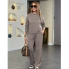 Kadın Uzun Kollu Bisiklet Yaka Yandan Fermuarlı Viskon Iki Iplik Bluz Ve Pantolon Ikili Takım