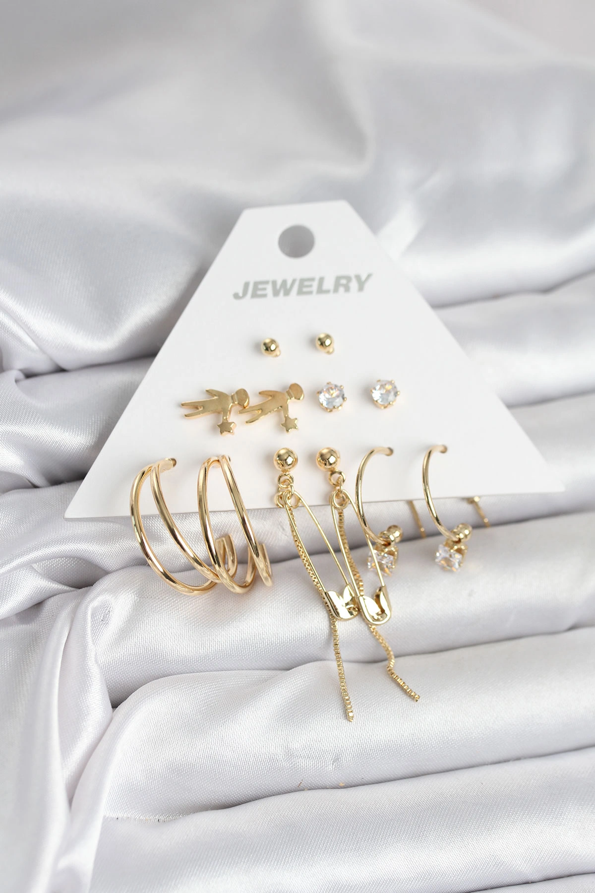 Pirinç Gold Renk 6 Çiftli Kadın Küpe Seti