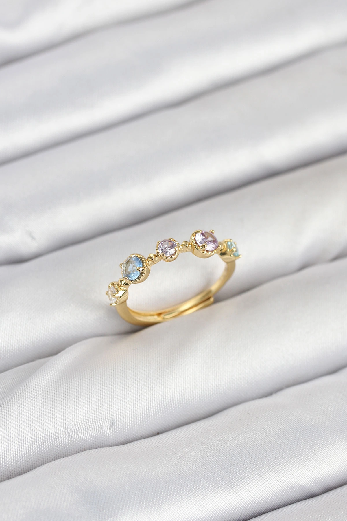 Pirinç Gold Renk Renkli Zirkon Taşlı Kadın Yüzük