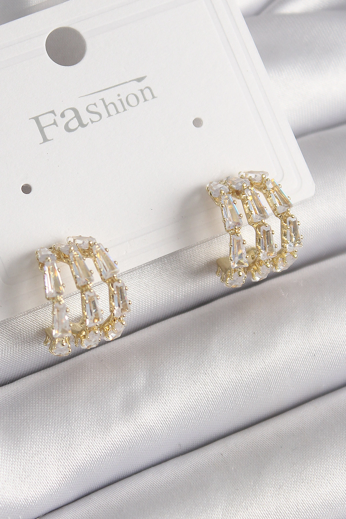 Pirinç Gold Renk Zirkon Taşlı Halka Model Kadın Küpe