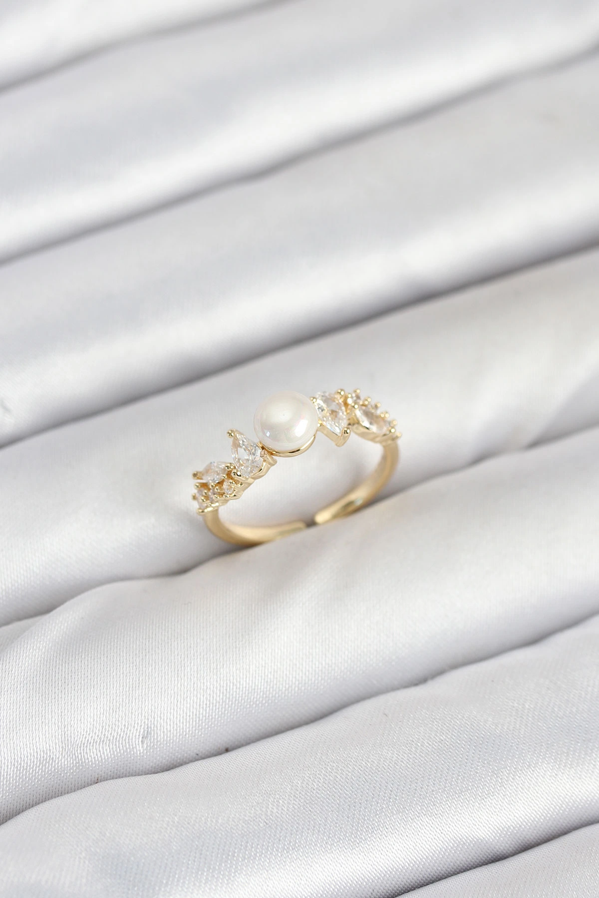 Pirinç Gold Renk Zirkon Taşlı İncili Model Kadın Yüzük