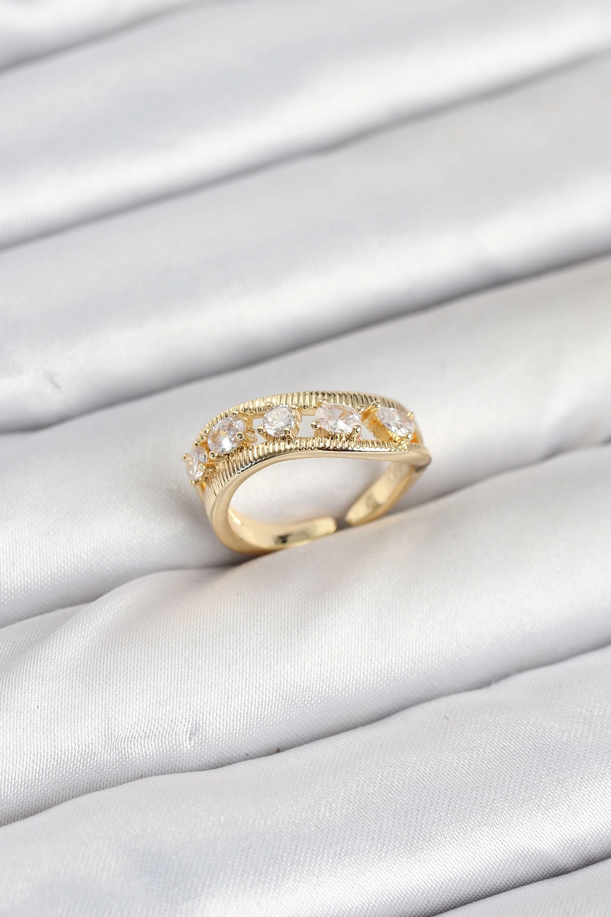 Pirinç Gold Renk Zirkon Taşlı Kadın Yüzük