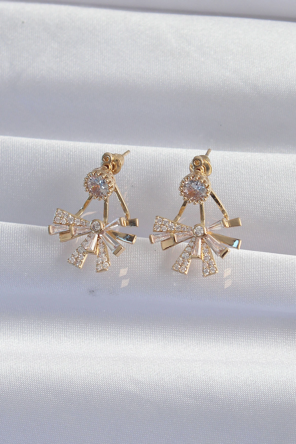 Pirinç Gold Renk Zirkon Taşlı Yassı Fiyonk Model Küpe