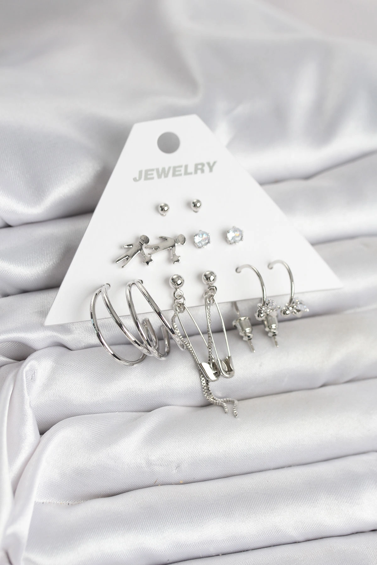 Pirinç Gümüş Renk 6'lı Kadın Küpe Seti