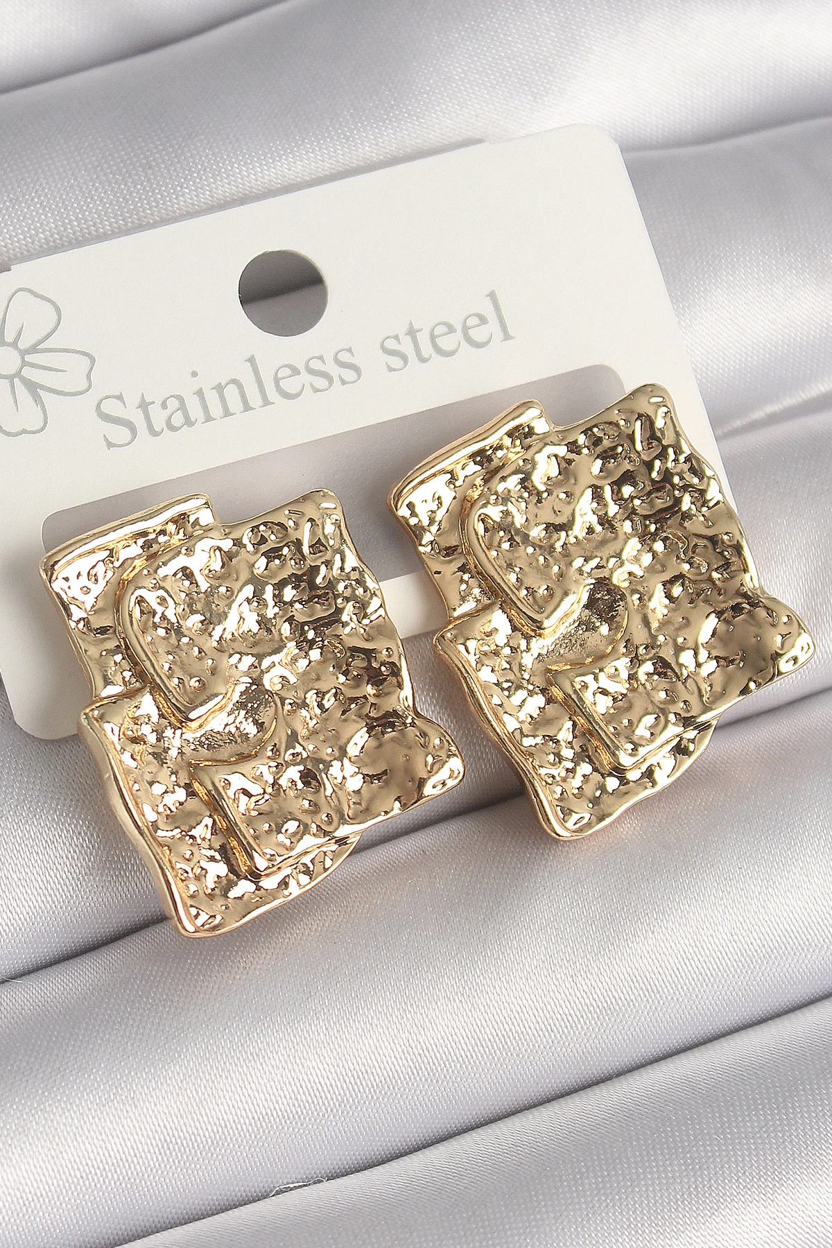 Pirinç Gümüş Renk İşlemeli Kare Plaka Model Kadın Küpe
