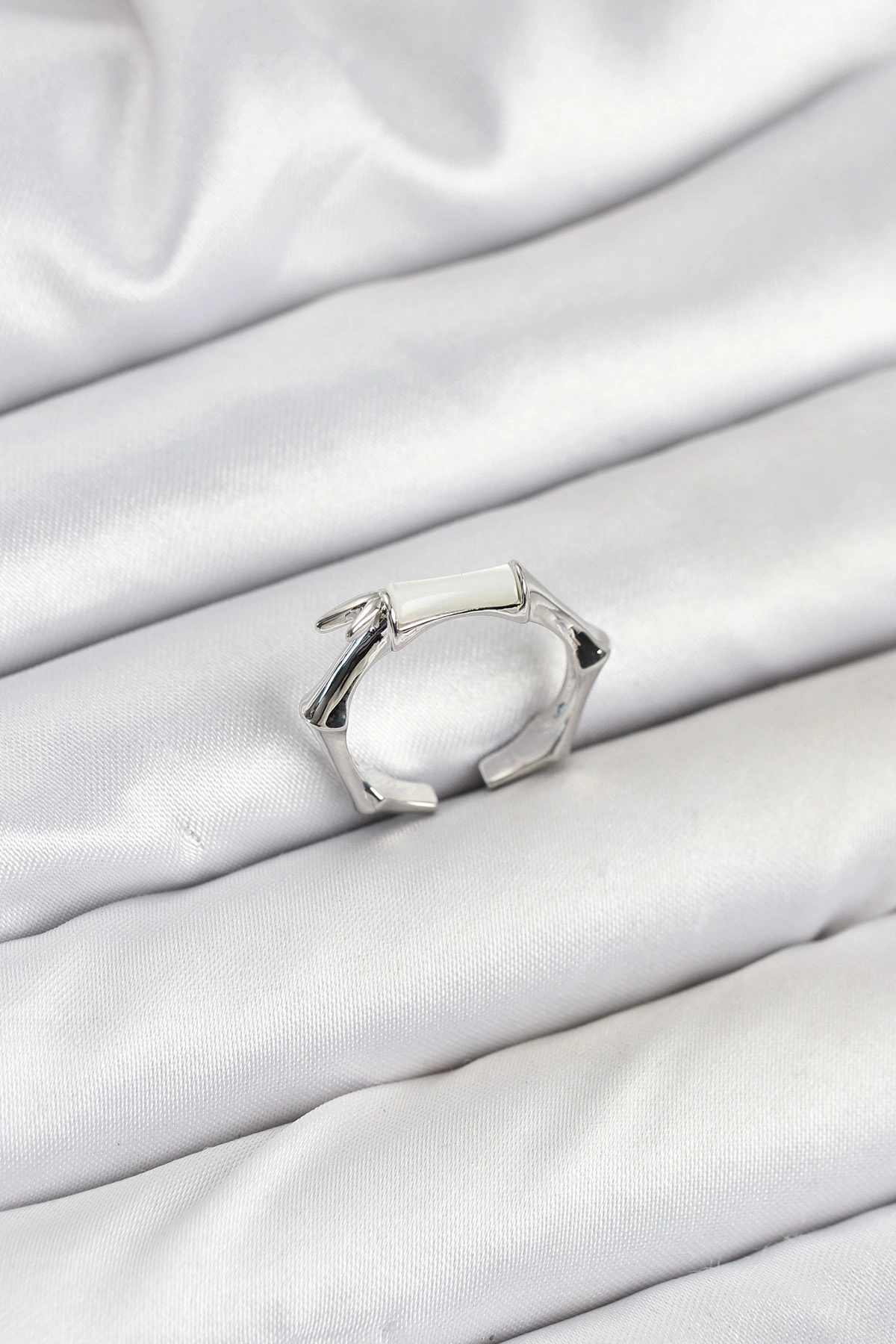 Pirinç Gümüş Renk Kemik Model Kadın Yüzük