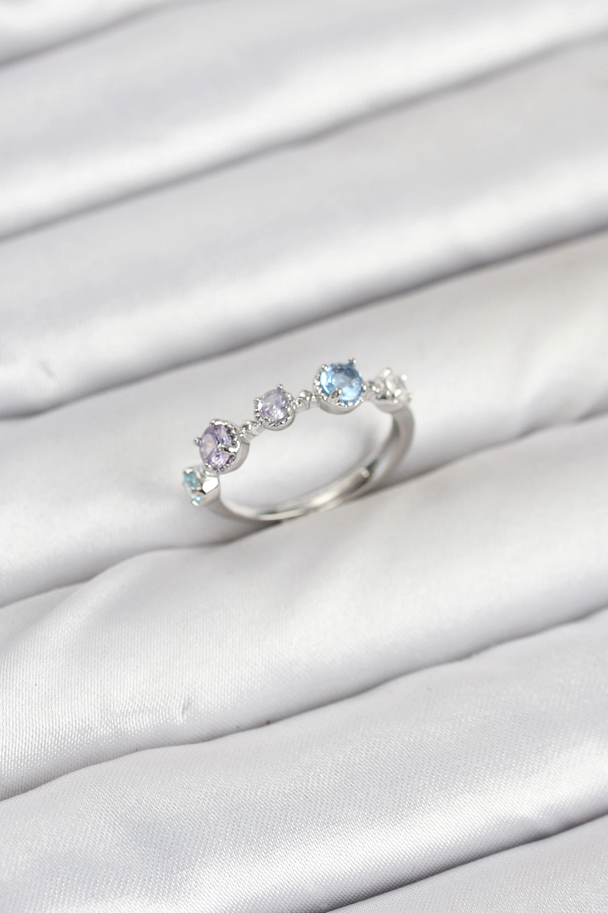 Pirinç Gümüş Renk Renkli Zirkon Taşlı Kadın Yüzük