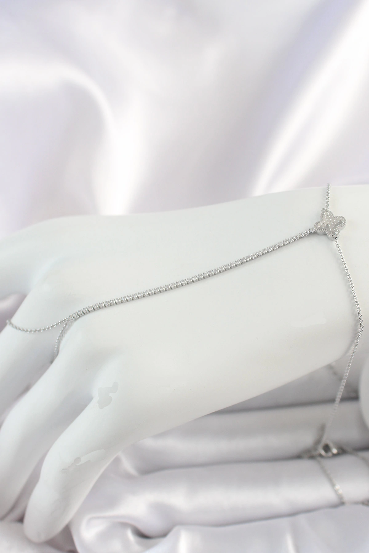 Pirinç Gümüş Renk Su Yolu Zirkon Taşlı İşlemeli Yonca Model Kadın Şahmeran