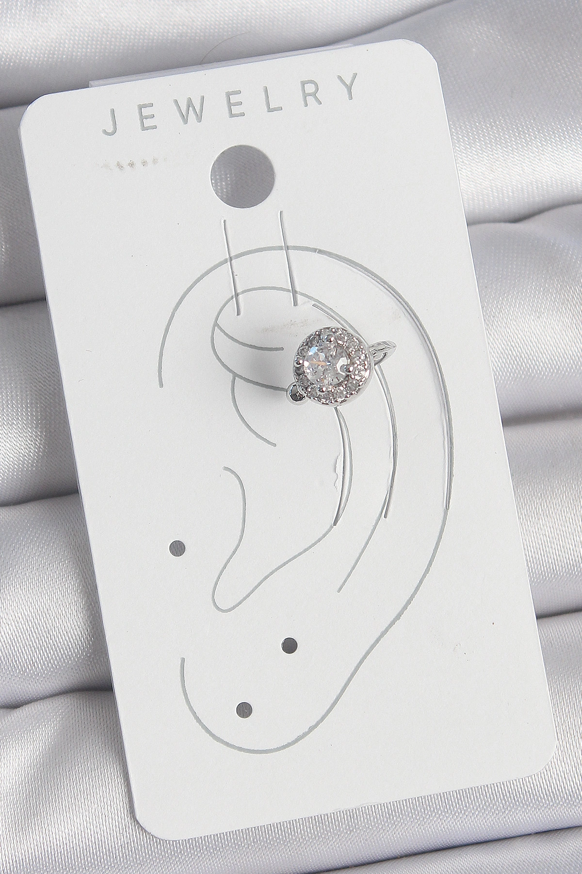 Pirinç Gümüş Renk Zirkon Taşlı Kadın Kıkırdak Model Küpe