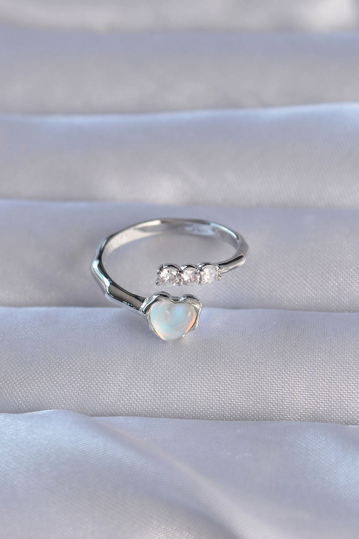 Pirinç Gümüş Renk Zirkon Taşlı Sedefli Kalp Model Ayarlanabilir Yüzük